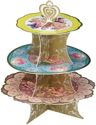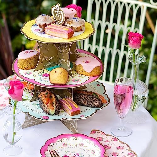 TALKING TABLES - 3-Tier Paper Reversible Floral Cake Stand Tea Party Decorations | Truly Scrumptious | Birthday Party Baby Shower Wedding And Anniversary Celebration Decoration
