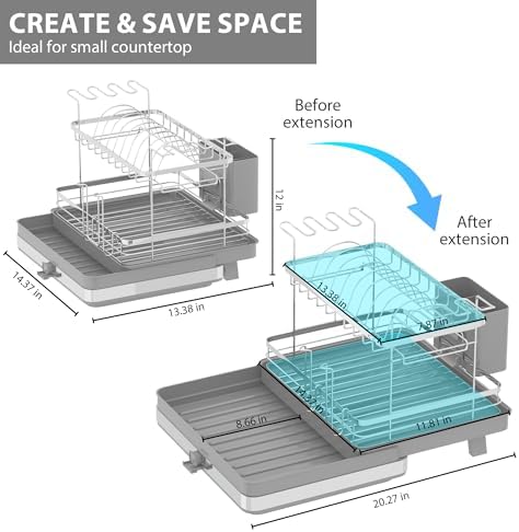 Extendable and Foldable Design: Drying rack kitchen space can be flexibly adjusted. When not in use, it can be folded to save space; when in use, it can be expanded to increase the draining board area. The components are detachable for easy cleaning, ensuring no dead corners