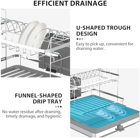 Tool-Free Assembly & Easy Cleaning:No tools needed! Snap-together design dish drainers installs in minutes, while detachable parts and a smooth surface simplify cleaning. Non-slip feet ensure stability on any counter