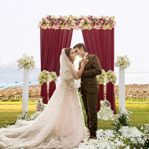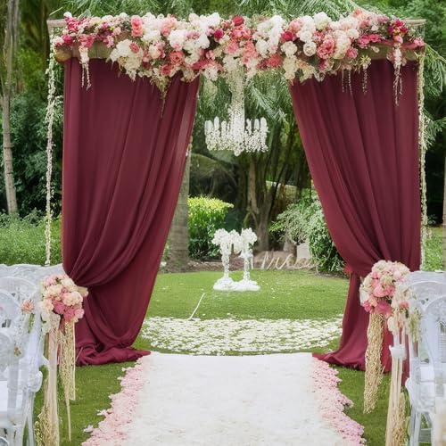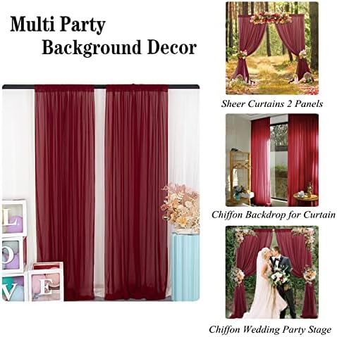 ❤ WHAT YOU GET : 2pc Wide 29 inches (74cm) by 84 inches (210cm) height burgundy chiffon backdrop curtain, sheer curtains 2 panels total area is 5ft wide by 7ft. height.