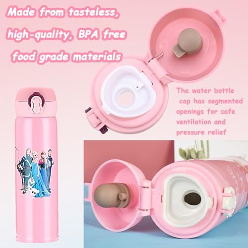 【Leakproof Water Bottle】Kids flask lid features a segmented opening for safe venting and pressure relief, preventing splashing and scalding problems. The cap is sealed with a seal soft ring to ensure no leaks.