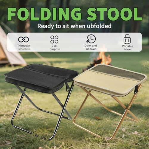 PREMIUM MATERIAL: Our camping stools are made of high-quality Oxford cloth and carbon steel, so the portable stools are stable and long-lasting, allowing you to sit stably