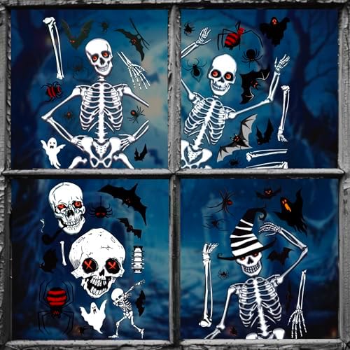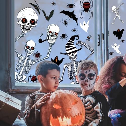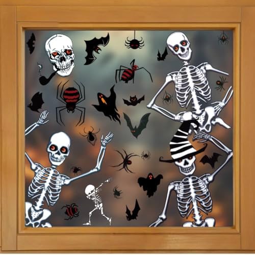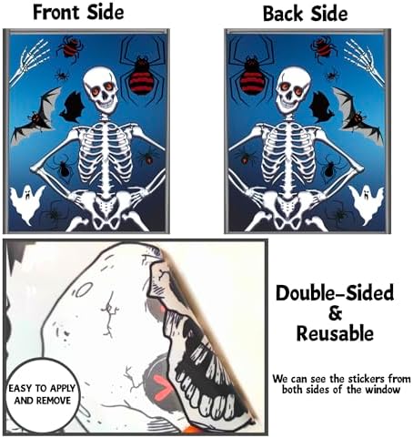 Halloween Window Stickers: Halloween Stickers are Double Sided and Reusable and Consist of 49 pcs included Skeleton Bats Ghost Spiders.