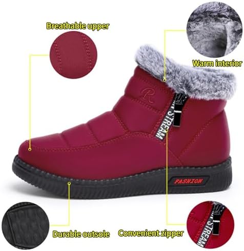 【Easy on & Off】There is an easy on & off design of side zip, these winter snow boots which can help you easy to pull on. Take shoes on and them up, your feet will be warm all day long.