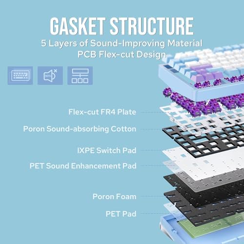 Gasket Structure with 5 Layers of Sound-Dampening Materials: Utilizing a gasket mount, the M75 keyboard offers just the right amount of bounce for a pleasant typing experience without causing finger fatigue, even after long hours of use. The M75 keyboard is equipped with multiple layers of sound-dampening materials, including sandwich pad, IXPE switch pad, PET sound-enhancement pad, bottom sponge and bottom PET pad, which effectively reduces key noise and vibration, optimizing the sound of the switches. Whether in an office or gaming environment, it is an ideal choice for a satisfying, low-noise typing experience