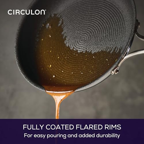 LIFETIME GUARANTEE: Featuring fully coated flared rims and helper handle for easy pouring and added durability, this latest Circulon induction frying pan is designed to stand the test of time. Metal utensil safe and withstands more than 350,000 scrapes without scratching, peeling, or flaking. Scratch free, worry free, forever