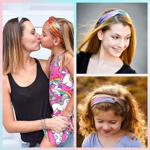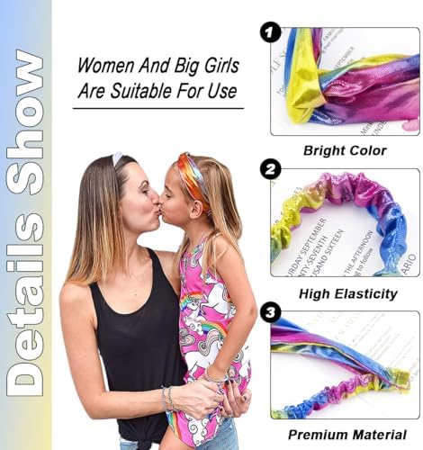 【Perfect Size】✿ Wide Size: 3cm in width and 54cm in length, fit any head size, soft rainbow headbands fit for women and big girls.