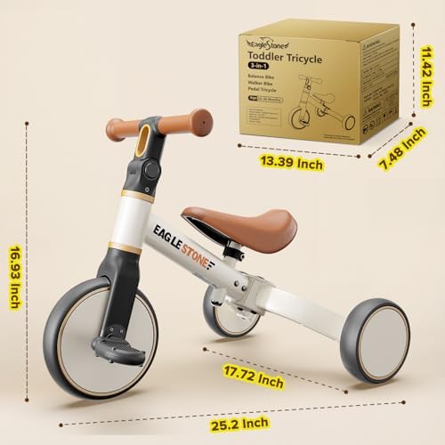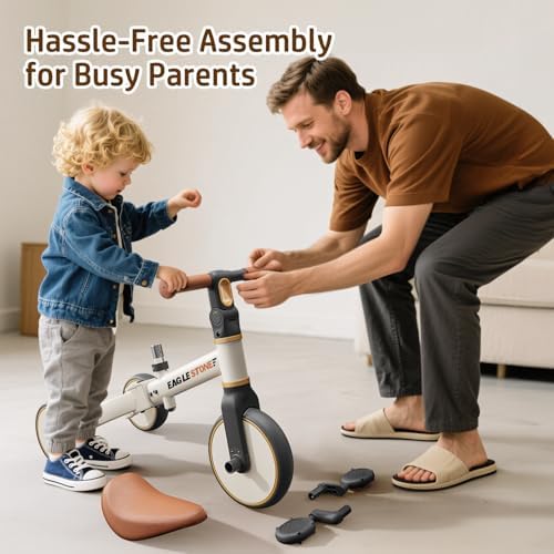 【Grows with Your Child – 3-in-1 Versatility Without the Design Flaws】Unlike other bikes that cause heel bumping or awkward foot placement, the EagleStone toddler tricycle features optimized rear wheel spacing and pedal positioning. With 3 bike forms and 5 riding modes, it smoothly transitions from guided trike to independent balance bike—supporting your child from 18 to 48 months without discomfort.