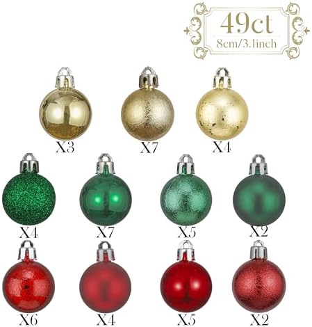 【Complement to the Theme】49pcs balls set is matching your theme of Christmas stocking, tree skirt, tree topper, wood hanging pendants, wood table decor, wreath and garland.