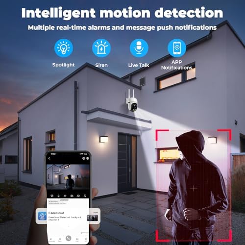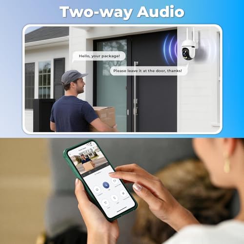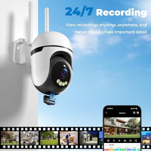 【Two-way audio and 24/7 recording】The Suloron outdoor security camera features a built-in microphone and speaker, allowing you to talk to the person in front of the camera in real time. A 3-meter power cord makes installation easier, and it supports 24/7 recording, saving videos to the cloud or a TF card (up to 128GB, not included). It can also send you instant alerts via an app