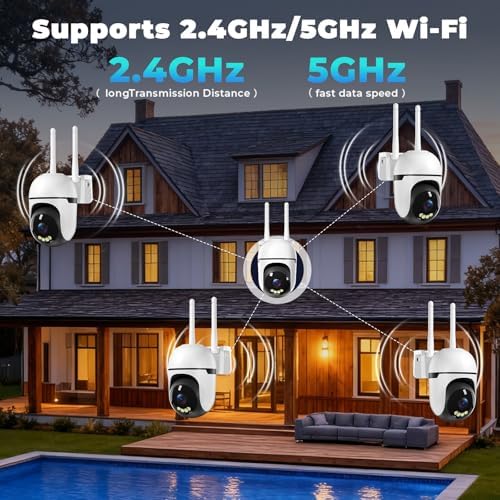 【2.4 GHz & 5 GHz Dual-Band Wi-Fi】The Suloron outdoor camera supports both 2.4 GHz and 5 GHz Wi-Fi, offering superior performance compared to cameras that only support 2.4 GHz. This ensures more stable connections, faster data transfers, and a stronger signal range. Furthermore, it improves compatibility and interference resistance, making installation, connection, and use even easier