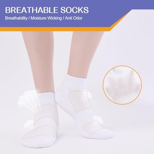 Breathable Odor Control Running Socks Women: Featuring a mesh design on the instep and made with natural cotton, our white ankle socks women enhance breathability and moisture wicking. This reduces heat buildup, keeping your feet dry and odorless all day