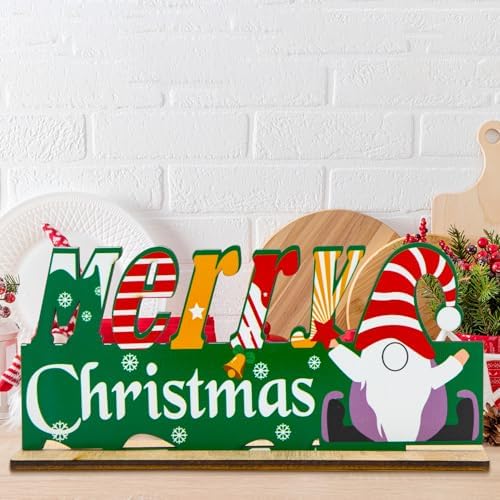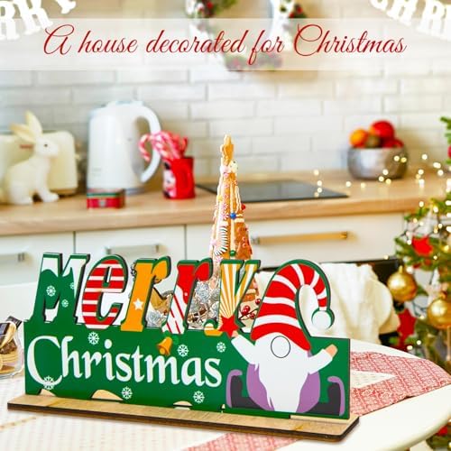 π¦ CUTE CHRISTMAS STYLE- Xmas wood signs snowmen and gnome with "Merry Christmas" , are painted in bright colors, perfect for indoor Christmas decorations. Bring joy and warmth to your home this holiday season! ideal for styling a winter Christmas tiered tray, table center, shelf, office, and anywhere you want to decorate.