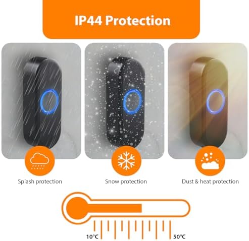EXTRA WIDE RANGE: thanks to its 85 dB and extra wide wireless range (in open field, up to 300 m), you will hear the doorbell wherever you are in the house, even you are in the garden. A reliable radio signal keeps the chime and push button connected, ensuring no visitor goes unnoticed