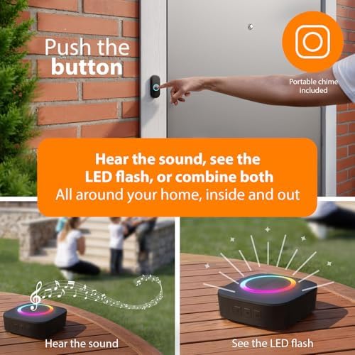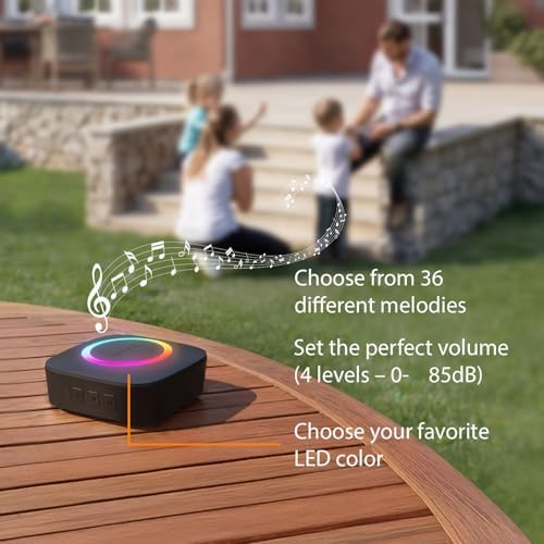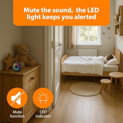 ADJUSTABLE: set the tone with this convenient and adjustable doorbell set. You can choose between 36 melodies and 4 volume levels. You can also set the LED ring of the chime to the most striking colour in case your are hearing-impaired or if you activate the mute function when your baby takes a nap. This way, you are sure to never miss a visit.