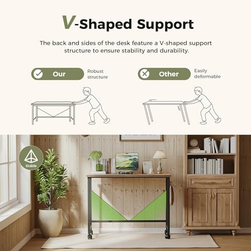 【Style Meets Affordability】Upgrade your space for less! The rustic wood-laminate finish mimics high-end furniture, while the portable desk on wheels costs a fraction. Perfect for students, remote workers, or as a chic kitchen island!