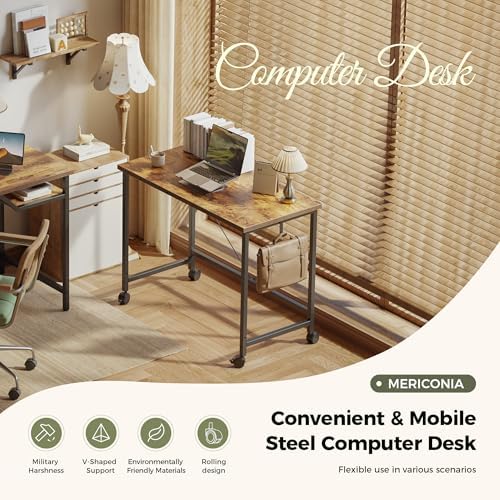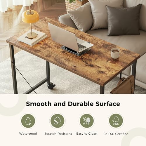 【Assembles in a Snap】Assemble your table with wheels in just 15 minutes! Our rolling computer desk comes with clear instructions and pre-drilled holes. All hardware included—no special tools needed. 【Space-Saving Design】The sleek wood surface and steel frame of this desk with wheels complement any décor. This compact rolling desk maximizes your available space while providing ample work surface for all your needs.