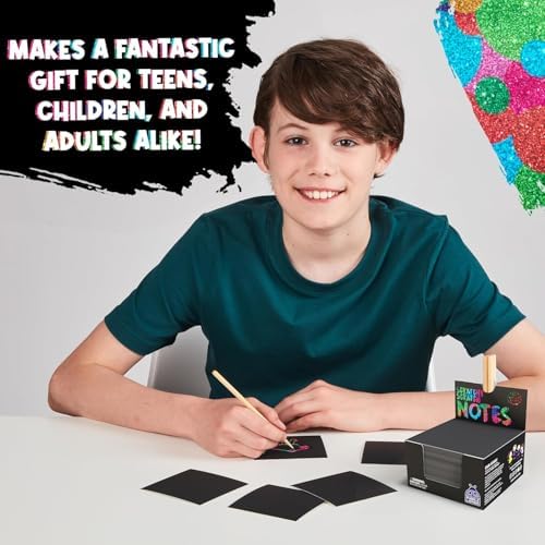 Magic Doodle Paper - Blank novelty note cards with a fun rainbow glitter sparkle holographic layer hidden under the black matte coating; each order comes with one box of with 150 sheets of notecard scratch paper, 2 stylus pens for messages, small notes or scratch paper art