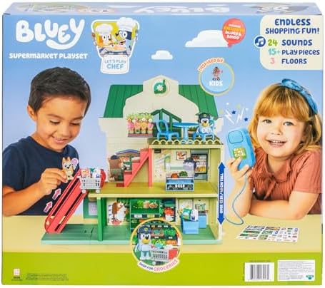 Bring home the fun and imaginative play of Bluey with the Supermarket Playset!
