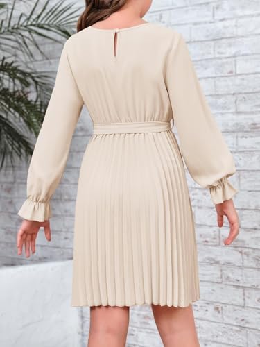 Feature: Puff long sleeve dress, round neck. Casual pleated and loose style. Above the knee length, plain colour, casual, elegant and stylish.