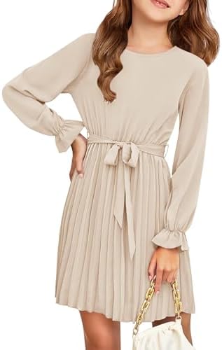 Design: This dress for girls features long sleeves for a comfortable and stylish fit. The A-line with pleated hem gives the dress a light and playful look. The front ties add a pretty touch to the skirt and can be tied separately.
