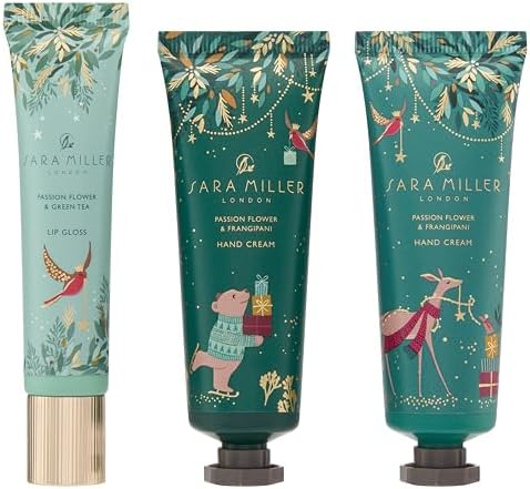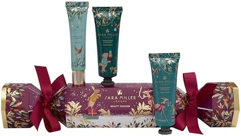 Enter the playful world of Sara Miller with this enchanting Christmas cracker with festive woodland characters, filled with two luxury 30ml hand creams and a refreshing passion flower and green tea lip gloss.