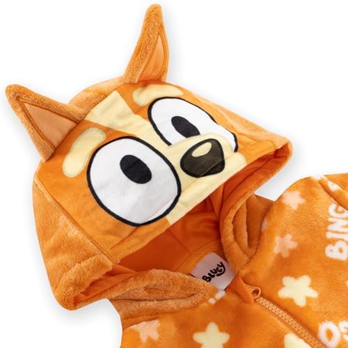 Fun 3D Bingo Details: The hood of this Bluey onesie comes to life with Bingo’s iconic eyes, nose, and 3D ears, making bedtime or lounging extra fun and Bluey inspired