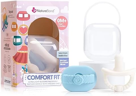 ★ MOST COMFORTABLE & VALUE FOR MONEY BABY PACIFIERS DUMMY BINKIES– NatureBond Silicone Baby Pacifiers (Patented) are designed for comfort fit with contoured curve fitting mouths of babies / infants. The nipple shape is soft and durable, making it ideal for newborns, even when baby's teeth are coming in. All these are designed to provide maximum comfort for your little ones.