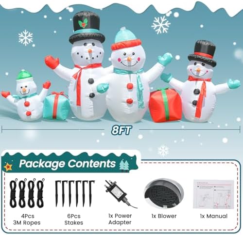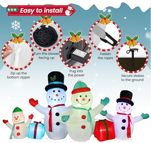 ☃ Easy to Set Up: The inflatable snowman features a 10 ft power cord, offering the flexibility to place it anywhere. With a powerful blower, it inflates in just minutes, transforming your space into a cute and attractive scenic spot—without the distraction of loud noises.
