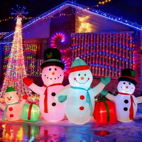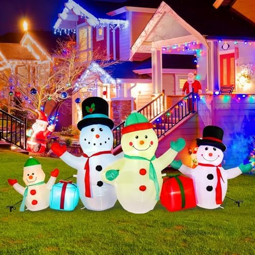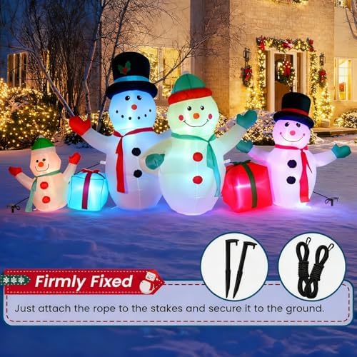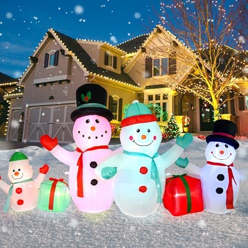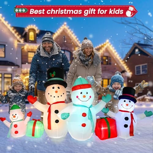 ☃ Bright Cheerful: This cheerful inflatable snowman family, hand-in-hand with brightly colored gift boxes, is eagerly awaiting the arrival of Christmas. Dressed in festive attire, their warm smiles radiate joy and happiness, spreading winter cheer throughout your home and garden.