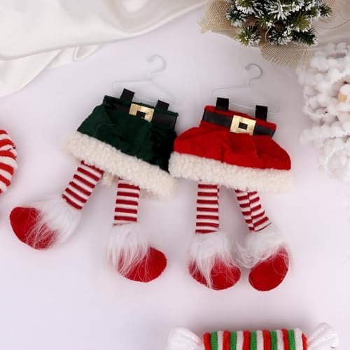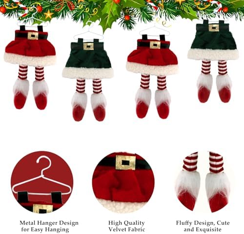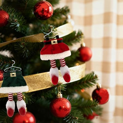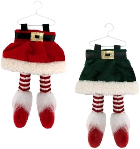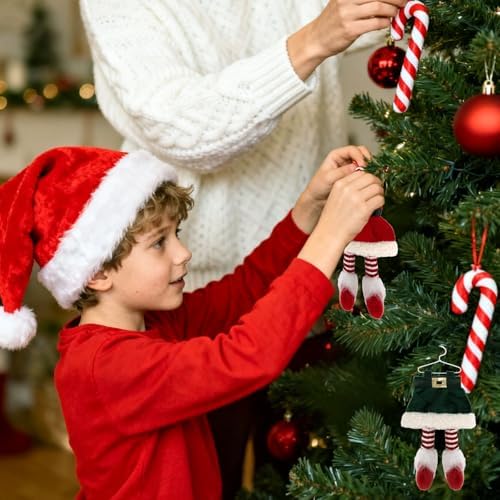 Whimsical Design: Inspired by Santa Claus himself, this adorable christmas hanging decoration features his iconic outfit with red-and-white striped socks and red plush shoes. A black belt with a golden buckle accents the waist, while the cute white hanger adds to its delightful Christmas character