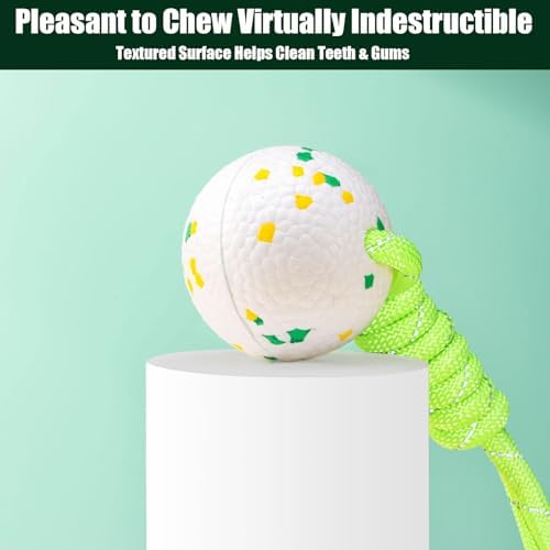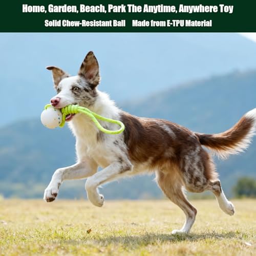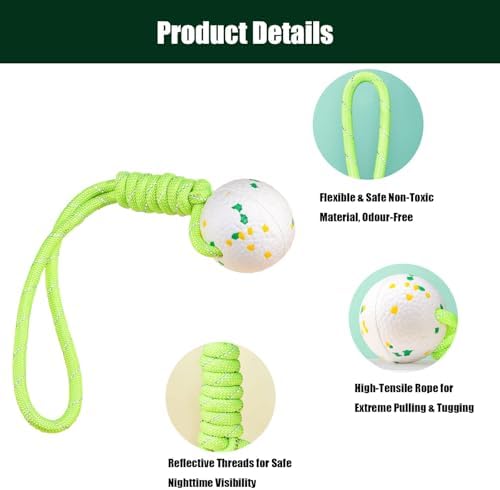 【Designed For Aggressive Chewer】- Engineered from ultra-durable ETPU foam, this dog ball withstands aggressive chewing and relentless biting. They are lightweight, toxic-free, and, most importantly, Bite-proof. Your dog will have fun chewing and wrestling with it without leaving any noticeable marks! The rope is not for chewing; always supervise your dog when playing with this toy
