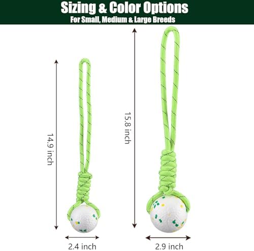 【Two Perfect Sizes for Every Dog】- Choose the ideal toy for your furry friend: Large size Ball (2.9 inch/7.3cm): Recommended for Medium and Large breeds. Small size Ball (2.4 inch/6cm): Perfect for Small breeds and playful puppies. Both sizes feature a strong, 19.7-inch nylon rope, perfect for a thrilling game of tug-of-war.