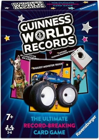 In this fun, family trivia game look closely at the facts and images on the card, the card then gets turned over and you have to work together to answer questions about the Record. Remember correctly to gain points to win!