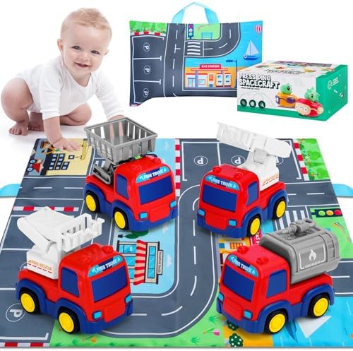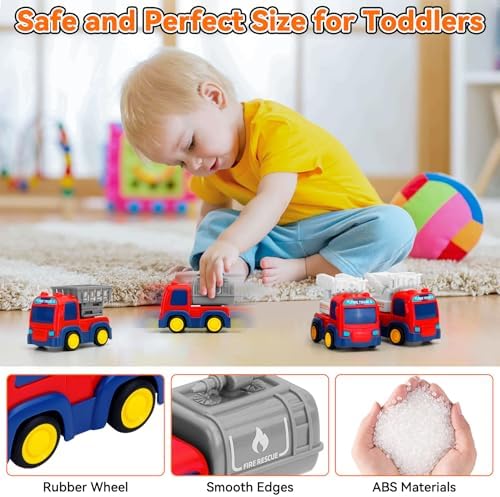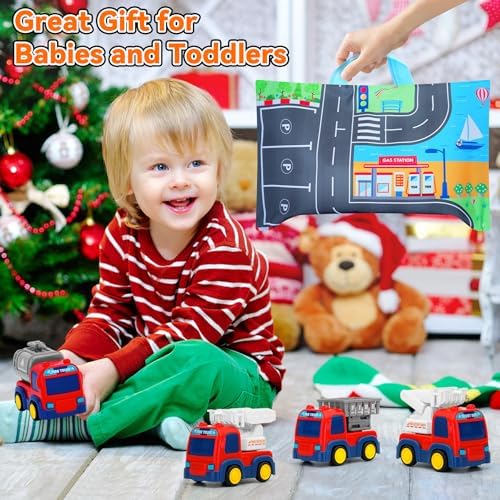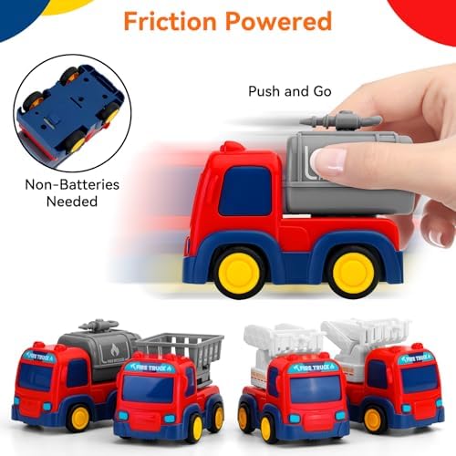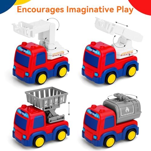 Early Educational Baby Toys: Funny toddler toys age 1-2, NO battery needed,Push and Go Car the toddler toys with flexible joints feature free adjustment to work like real fire trucks to swing, rear dumping, and bend, Have a race with friends or parents to see whose car can go farther. Greatly develop your baby's social skills, hand-eye coordination, fine motor skills, and improve the parent-child interactive while playing