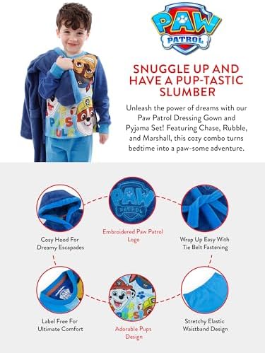 Pawfect Paw Patrol Gift for Little Heroes: Searching for boys gifts or gifts for kids? Look no further! This pyjama and dressing gown set is a must have for birthdays, Christmas, or any special occasion. Our Official Paw Patrol merchandise will be a hit for sure.