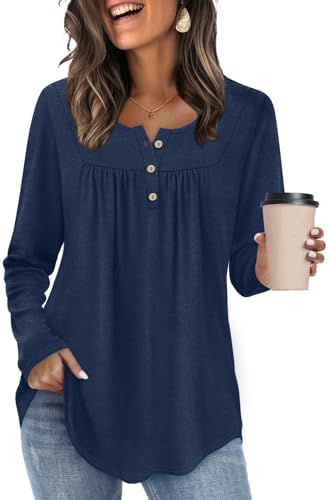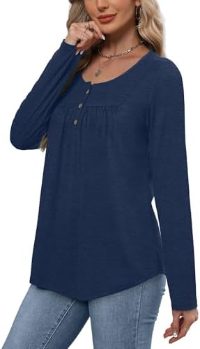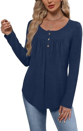 【Stylish Design】Featuring a classic henley neckline with button detailing, these womens jumpers add a touch of elegance and versatility. Delicate bust pleats creates a chic, slimming effect, while the adjustable buttons let you tailor the look—from casual to polished. A must-have in your collection of womens tops.