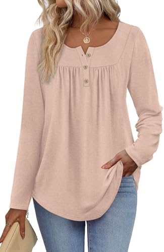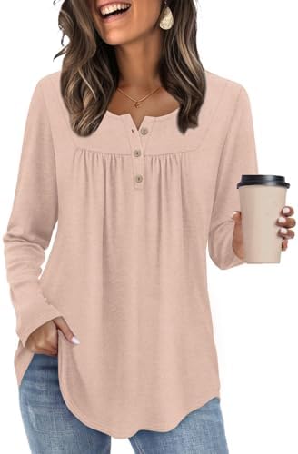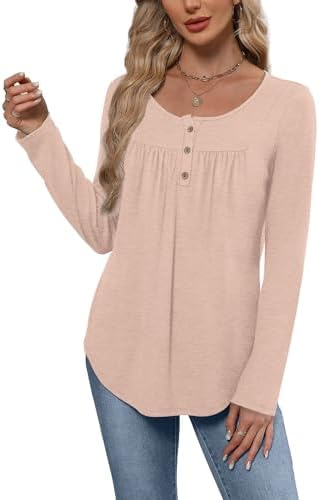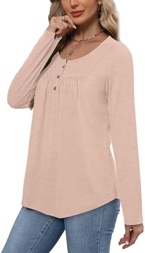 【Stylish Design】Featuring a classic henley neckline with button detailing, these womens jumpers add a touch of elegance and versatility. Delicate bust pleats creates a chic, slimming effect, while the adjustable buttons let you tailor the look—from casual to polished. A must-have in your collection of womens tops.