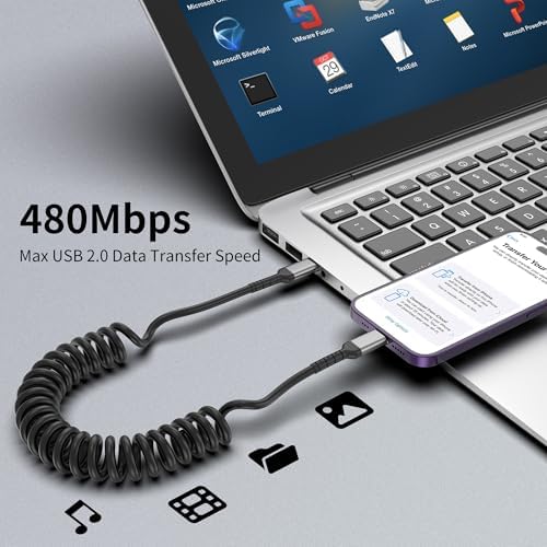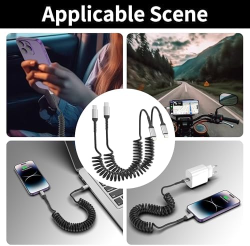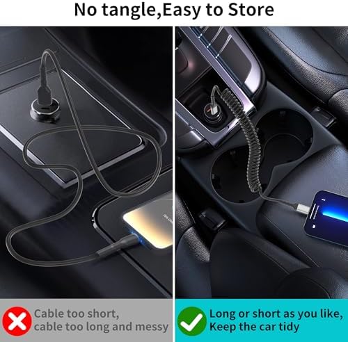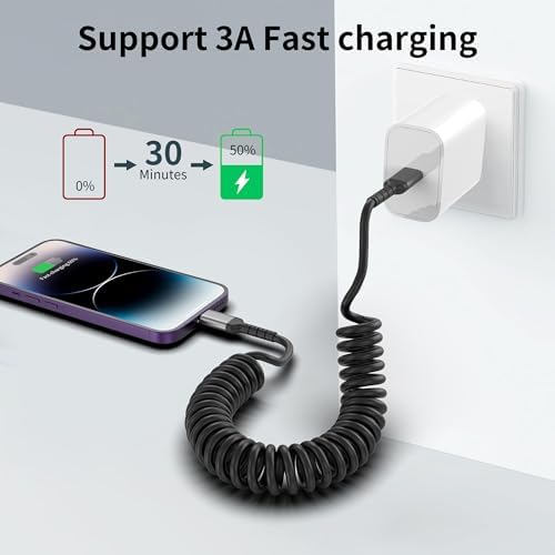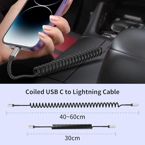 【Coiled Lightning Cable】This usbc to lightning cable short features a spring design that allows you to stretch it to your desired length. In its normal state, it is 30cm long. It also can be strectched from 30cm to 60cm. Making it an ideal choice for use in your car.