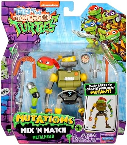 SWITCH IT UP: The Mix N Match Metalhead figure includes Raph's head, Leo's left arm, and Metalhead's awesome weapons! Use them to turn Metalhead into a custom mutant, take it all apart, then mix and match again!