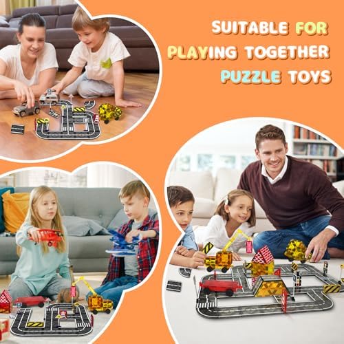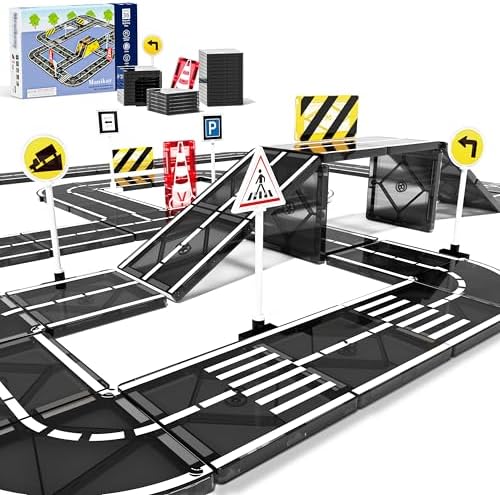 【Creative Imagination & Learning Through Play】Magnetic road tiles empower children to build an unlimited creative playground, constructing tracks, elevated bridges, tunnels, and ramps for toy cars, race cars, and buses. Through dynamic role-play, kids navigate realistic traffic scenarios, developing foundational knowledge of road safety rules and spatial awareness.