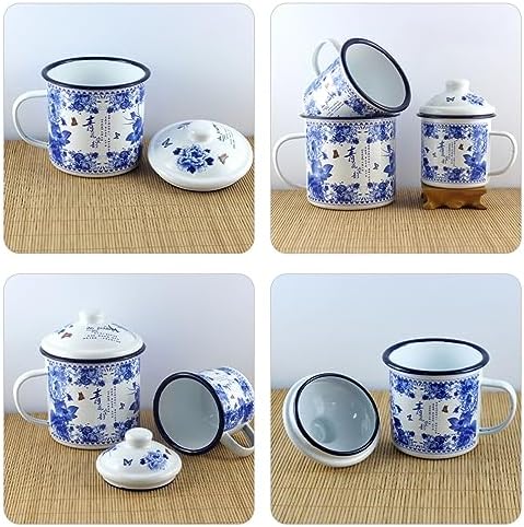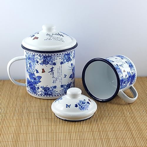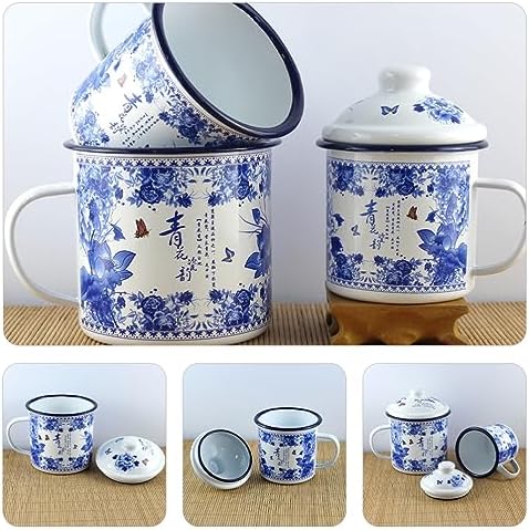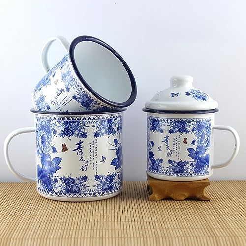 Distinctive Vintage Design: This enamel mug features a classic blue and white porcelain style inspired by traditional Chinese enamelware, providing a look combined with practical usability for tea, coffee, or milk