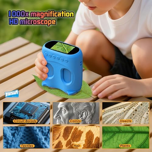 [ Upgrade 1000X Microscopes] Upgrade 200x-1000x range, allowing kids to explore a wide range of everyday objects, Perfect for sparking curiosity. Also, suitable for adult who are interested in exploring the microscopic world, textile, jewelry, stamp, skin, hair, scalp, coin, plant trichomes and so on.