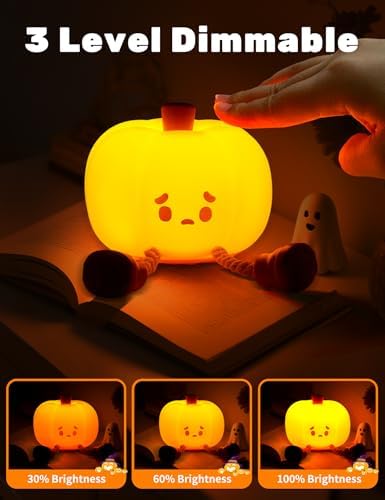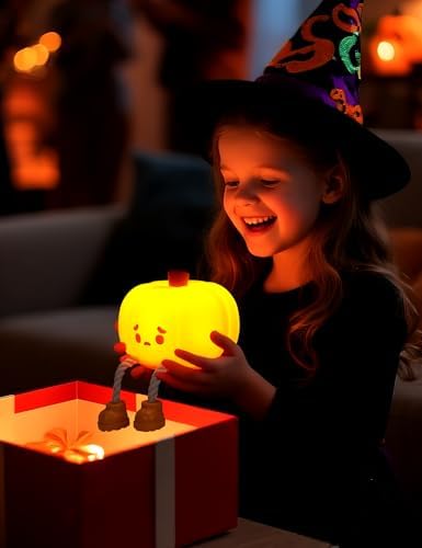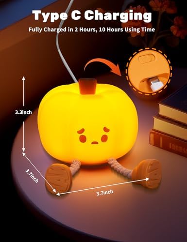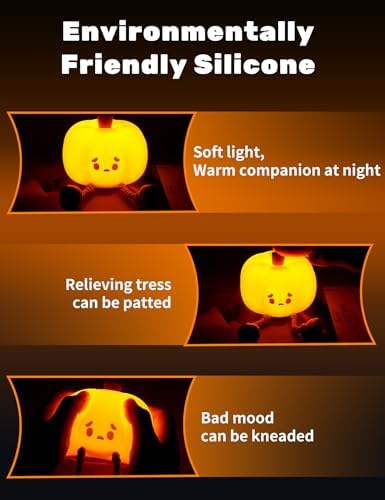 đăFun Pumpkin DesignăThe pumpkin night light's charming design adds a festive touch to any occasion, making it suitable for various celebrations such as Thanksgiving, Halloween, Christmas. It brings joy and warmth to any setting. The cute emo pumpkin night light is designed to help your child fall asleep more easily while playing. Made of BPA-free silicone
