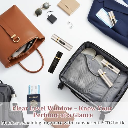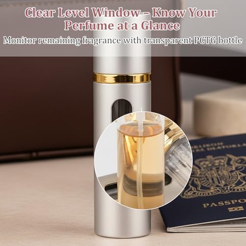 Smart Visibility & Capacity: A clear visible fill window lets you monitor remaining liquid at a glance, preventing unexpected run-outs. Holding 8ml per bottle—the optimal size for carry-on compliance and extended trips—this mini perfume refill bottle balances portability with practical capacity, fitting easily into purses, backpacks, or toiletry kits without bulk.