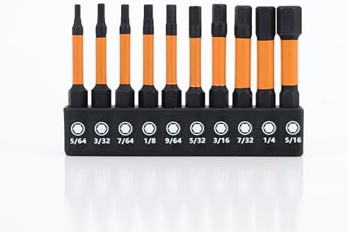 【Includes】This Set comes with H5/64, H3/32, H7/64, H1/8, H9/64, H5/32, H3/16, H7/32, H1/4, H5/16 totally 10 pcs hex bit. Customer Service is available if you have any questions about our products.