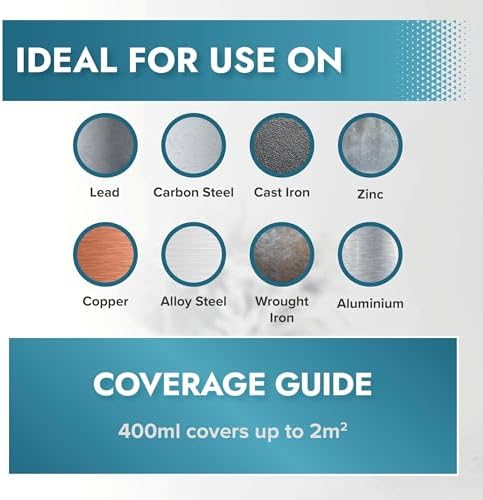Smooth & Even Coverage: Depending on the surface, a 400ml can can cover up to 2m2, providing strong adhesion to ferrous and non-ferrous metal substrates; Suitable for rusty metal gates, fences, garden furniture, tools, and vehicle parts