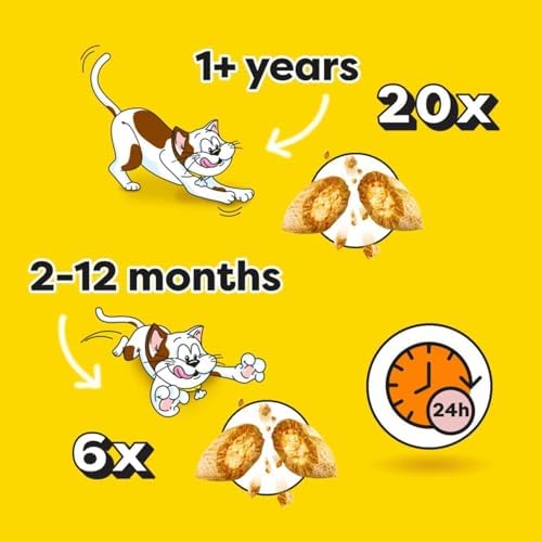 Dreamies cat treat biscuits are deliciously crunchy on the outside, soft on the inside; Your cat will enjoy the enticing taste of dual textured cat treats