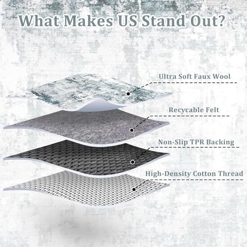 【Soft Low Pile Comfort】: Experience plush comfort underfoot with our short pile faux wool area rug. Its low-profile design ensures it won't snag on furniture or doors, making it safe for high-traffic areas. Perfect for kids and pets, this rug provides a cozy, cloud-like feel while remaining practical.