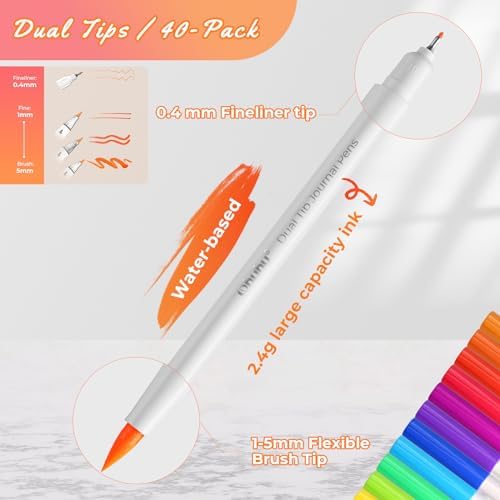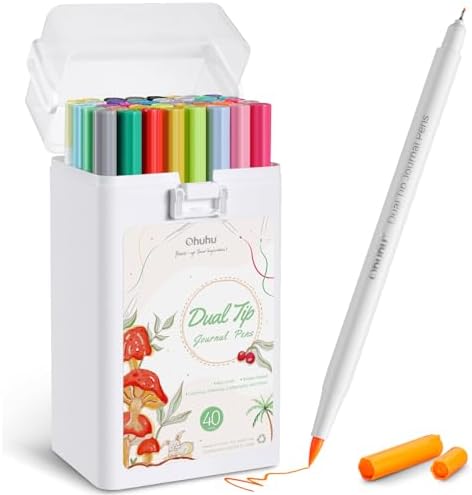 DUAL TIPS, DOUBLE YOUR CREATIVITY: Ohuhu markers feature durable dual tips with smooth ink flow. Specially designed for journal, the 0.4mm extra fine tip can glide through the details for intricate coloring, writing, drawing and doodling with fluid precision while the 1-5mm more flexible brush tip flows through the large area art projects for shading, colouring, blending and more, perfect for creating interesting pattern to design your journal.